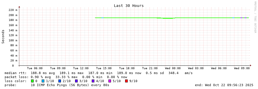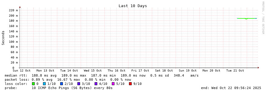 10 > 195.22.197.5 (195.22.197.5) [AS6762] 190.694ms 188.851ms 192.202ms
