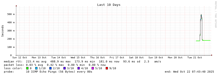 9 > 195.22.197.205 (195.22.197.205) [AS6762] 181.791ms 181.814ms 181.767ms