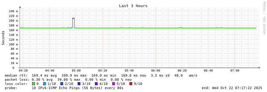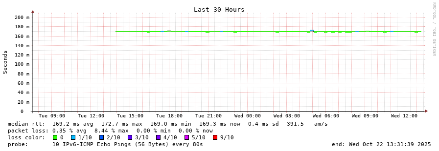 traceroute to 2a0b:2f00:0:234::151 (2a0b:2f00:0:234::151), 30 hops max, 80 byte packets - Generated at 2025-10-21 20:30:01