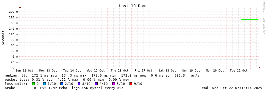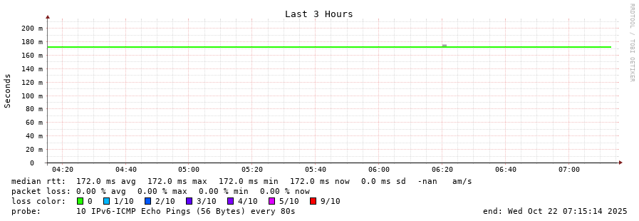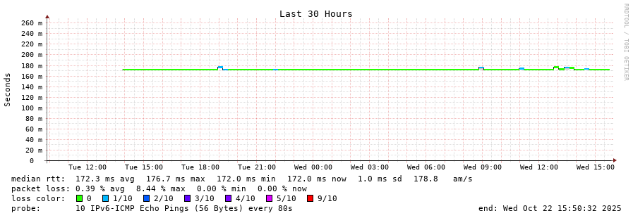 15 > 2001:730:2601:f005::2 (2001:730:2601:f005::2) [AS6830] 171.602ms 171.664ms 171.600ms