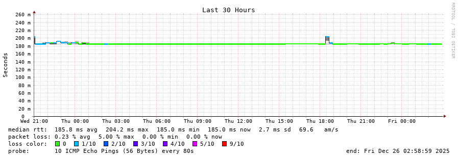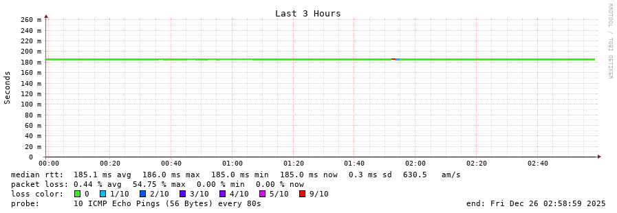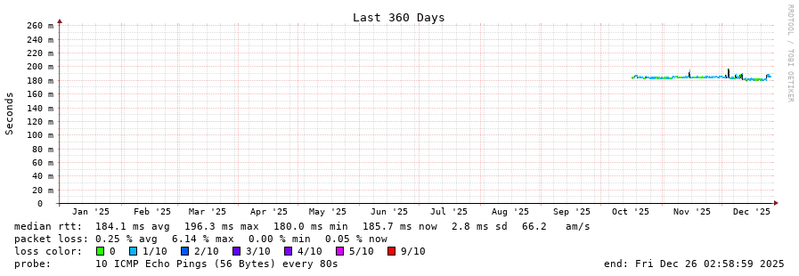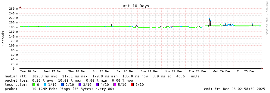 12 > 200.25.57.255 (200.25.57.255) [AS7195] 169.617ms 170.242ms 169.590ms