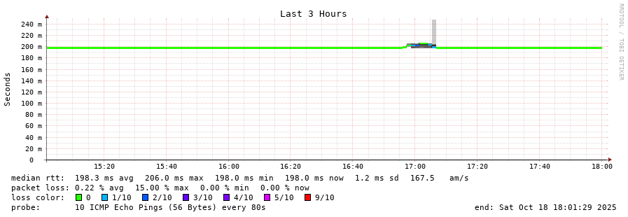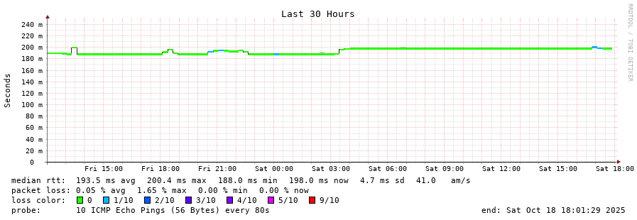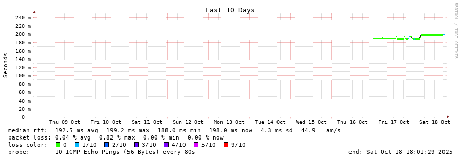 10 > 200.25.57.255 (200.25.57.255) [AS7195] 184.693ms 184.610ms 185.612ms