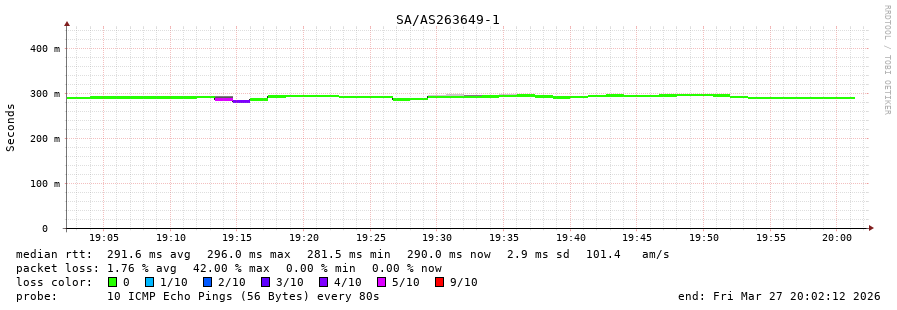 44. Max Roundtrip Time 0.291 seconds