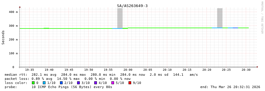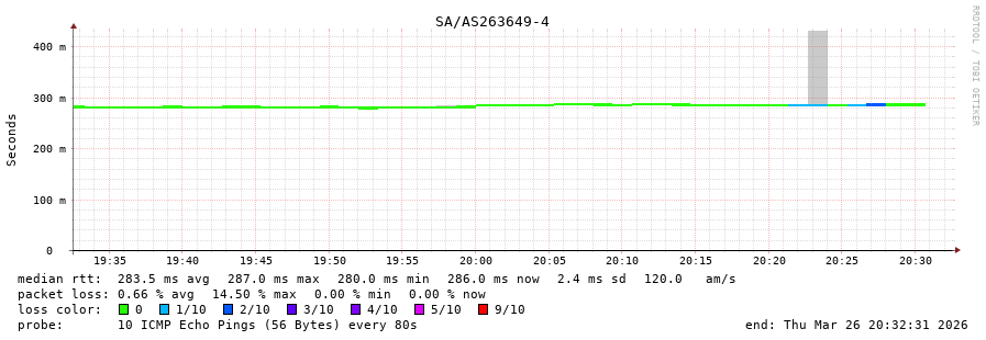 20. Median RTT 0.310 seconds