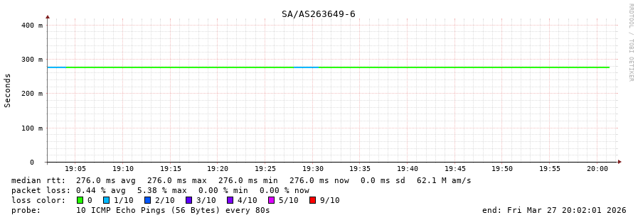 50. Median RTT 0.275 seconds